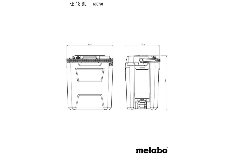 Metabo KB 18 BL on akkukäyttöinen 18 V:n kylmälaukku aktiiviseen viileänä tai lämpimänä pitämiseen – ilman verkkovirtaa missä ja milloin tahansa. Kolme käyttötapaa: käyttö Metabo/CAS 18 V -akuilla, virtajohdolla tai 12 V:n adapterikaapelilla (auto). KB 18 BL on varustettu tehokkaalla hiiliharjattomalla moottorilla, jossa on valinnainen ekotila joka pidentää akun käyttöaikaa entisestään. Käylmälaukussa on hyvin tilaa jopa suuremmille 1,5 litran PET-pulloille. Laukussa on myös irrotettava tilanjakaja järjestelyä varten. Varma kannen lukitus kääntämällä kahvaa eteenpäin.