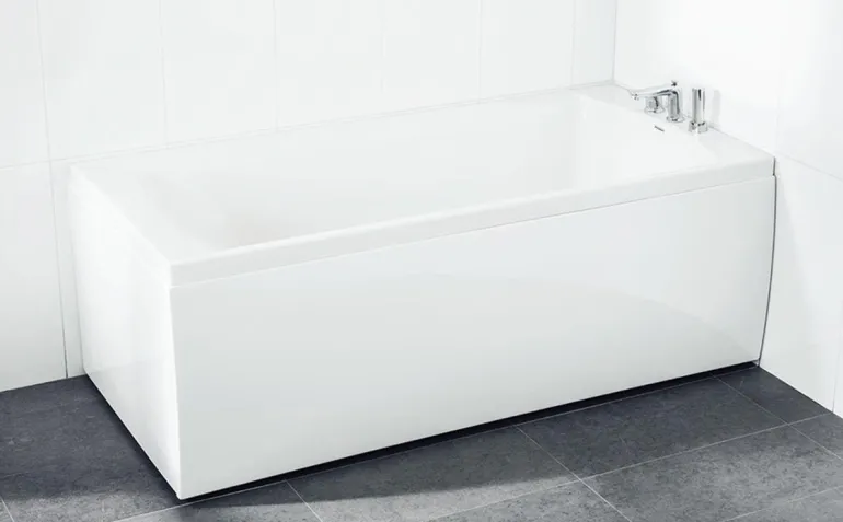 Svedbergs Z160G-0 on suorakaiteen muotoinen akryylikylpyamme. Valkoisella etu- ja päätylevyllä.