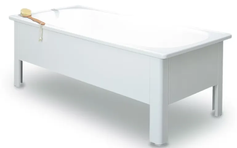 Svedbergs 1400 STD on valkoinen, suorakulmion muotoinen kylpyamme ruostumattomasta teräksestä. Tilavuus 160 l. Ilman etulevysarjaa (kehikkoa).