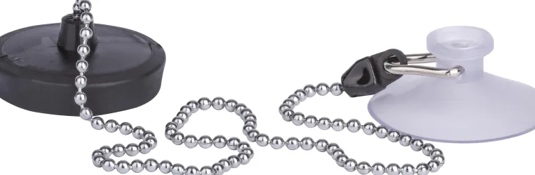 Ø42 mm:n kylpyammeen tulppa, jossa on kuulaketju ja imukuppi.