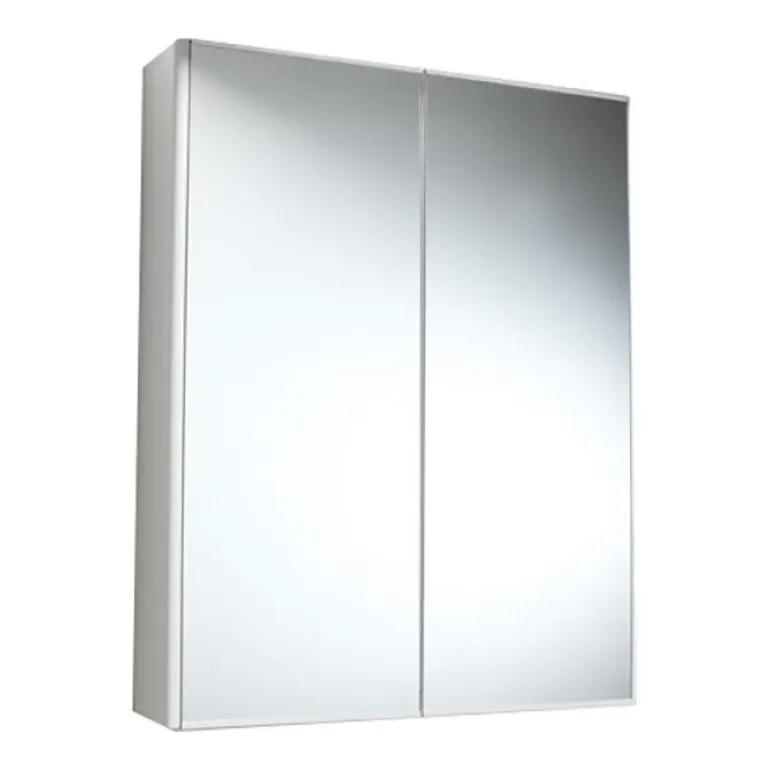 Kylpyhuonekaappi, jonka korkeus on 70 cm. Kaapissa on kaksi ovea, joiden sisä- ja ulkopuoli on kokonaan peililasia, ja kolme irrotettavaa hyllyä maalattua peltiä.