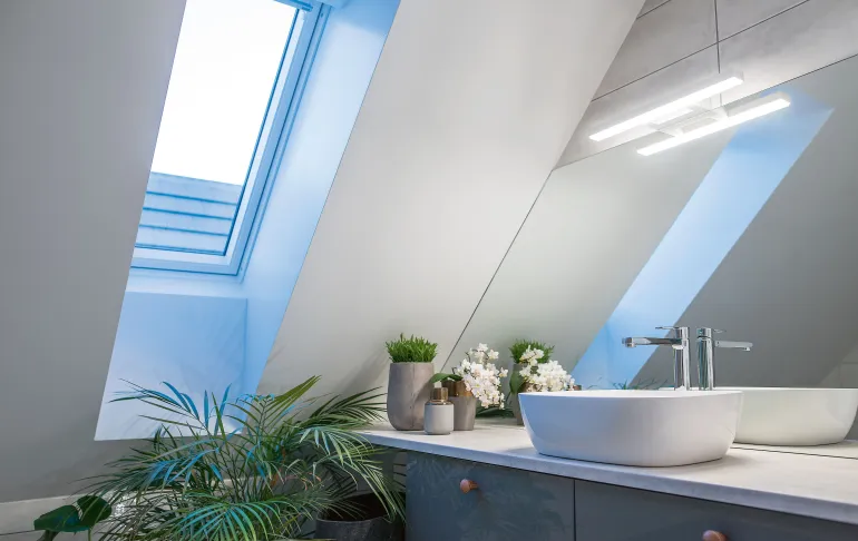 Kapea kylpyhuonevalaisin, joka asennetaan peilin päälle. Käytä hyllyille tai kaappeihin asennusta varten lisävarustetta 7503881 (myydään erikseen).