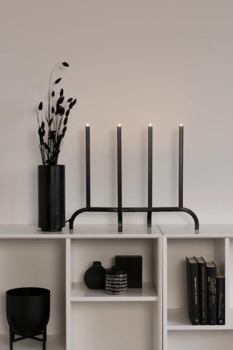 Konstsmide 3999-711TR on musta sähkökynttelikkö 4 valopisteellä, metallia. 12V/IP20.