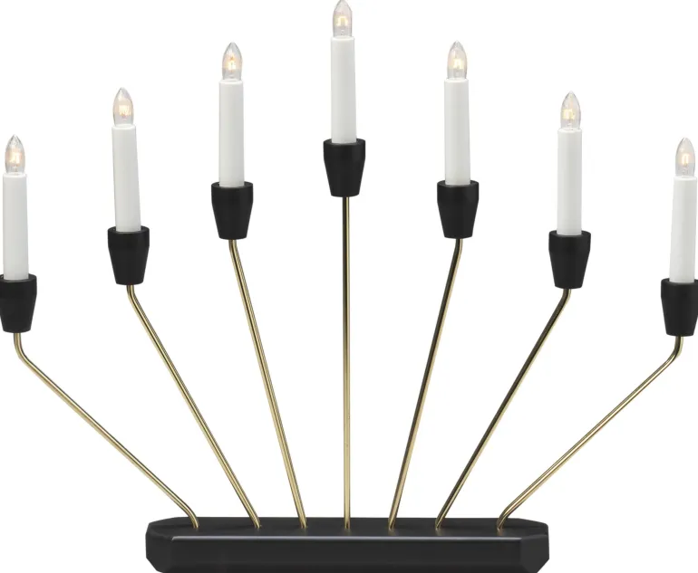 Konstsmide 3539-870TR on sähkökynttelikkö 7 kynttilällä (messinkipinnoitettu/musta), 24 V/IP20.