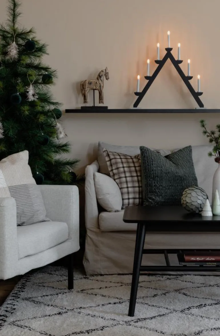 Konstsmide 3992-735 on puinen sähkökynttelikkö 7 kynttilällä. Musta, harmailla renkailla. Kytkimellä, 230V / IP20.