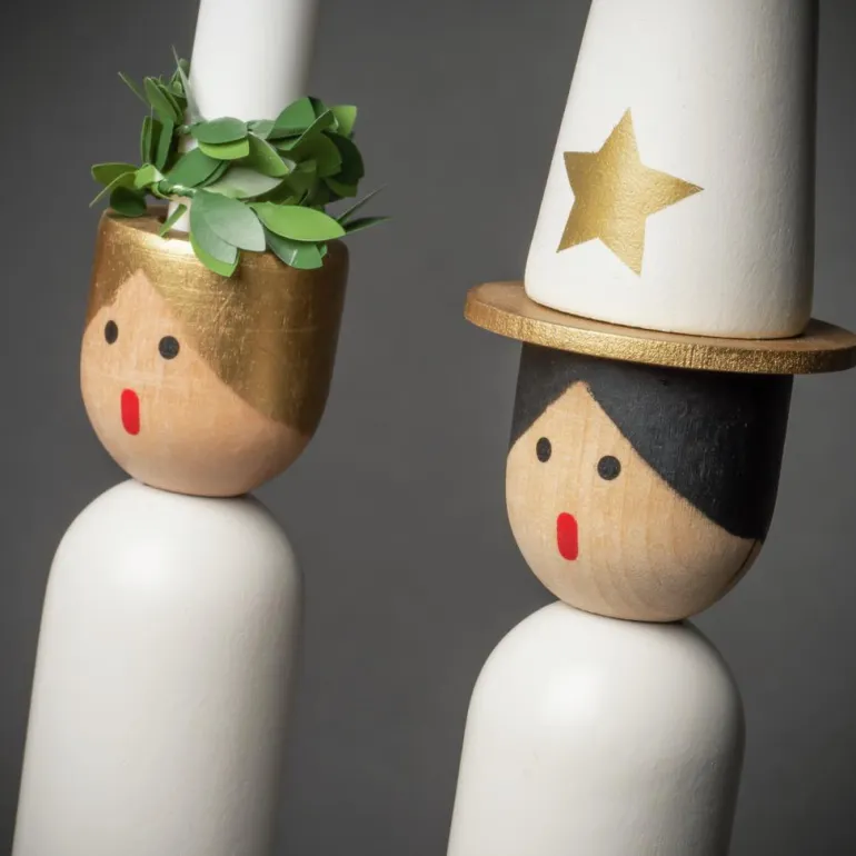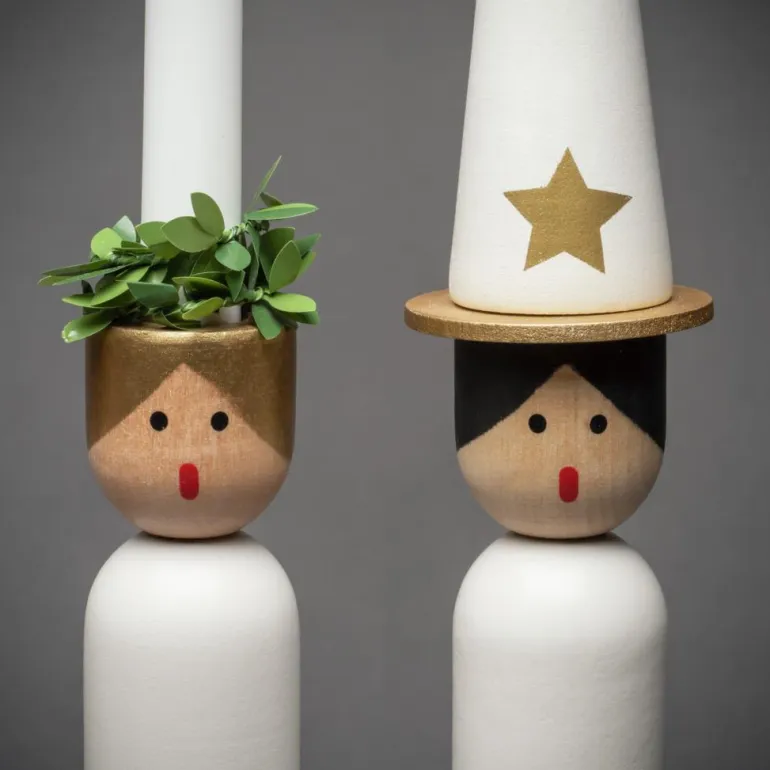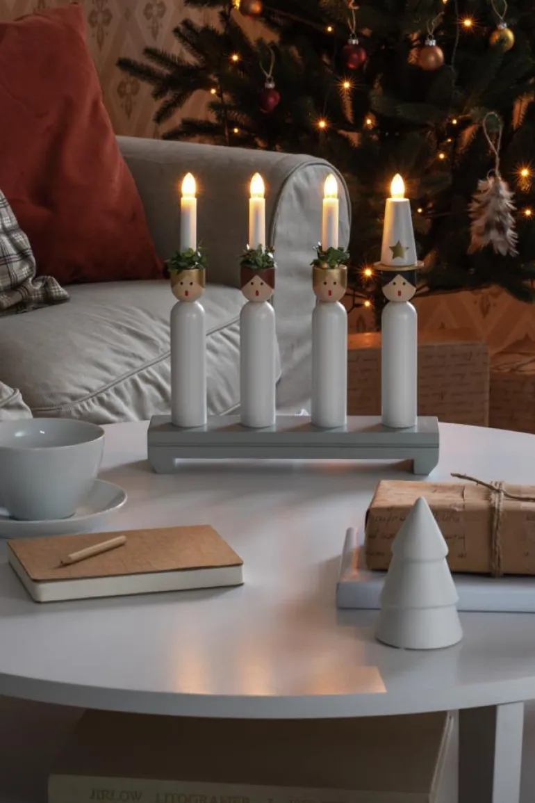 Konstsmide 3994-320 on puinen sähkökynttelikkö 4 kynttilällä (Lucia -teema). Väri lakattu valkoinen/harmaa, 230V/IP20.