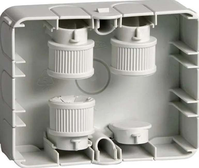 Kytkentärasia IP40. Mukana 3 kpl E1134136 16 mm:n putkille tai 8-14 mm:n kaapelille ja 1 tulppa. Voidaan täydentää johto- (E1134134) tai kaapelitelineen (E1134132) kiinnityslevyllä. Sopiva kansi E1134139 – 44 myydään erikseen.