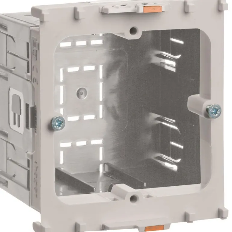 Rasia asennuskanavan BRx ulkopuolelle asennettaville tuotteille. Kiinnitetään asennuskanavan etuseinämän aukkoon. Se on helppo irrottaa liu’uttamalla rasian yläreunan vipua.
