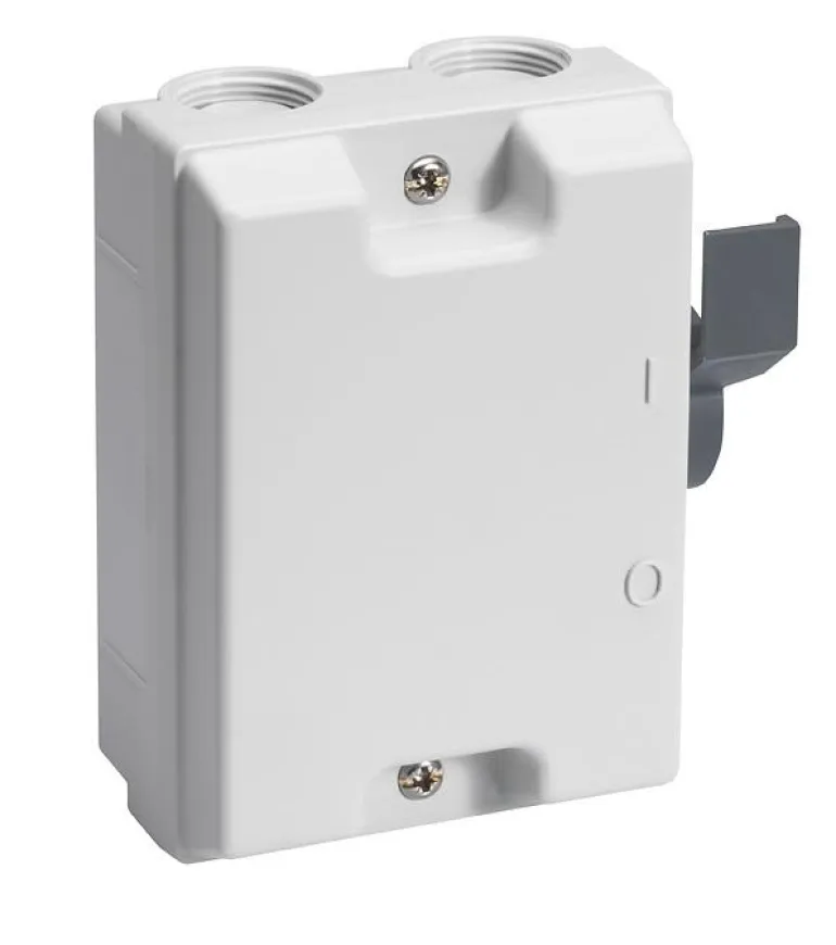 Vahvasta PBT-muovista valmistetut valkoiset kotelot. Sisääntuloaukot ovat M-kierteisiä, ja ne on suunniteltu aihioiksi. Tiivisterenkaat (IP54) toimitetaan kunkin kytkimen mukana. Laatikoiden pohjassa on 20 mm halkaisijaltaan oleva aukko takaapäin tapahtuvalle tulolle.