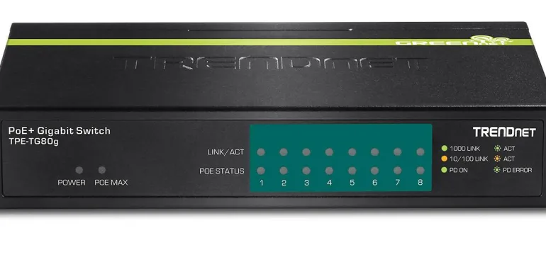 TRENDnet TPE-TG80g on metallista valmistettu kompakti kytkin. Malli on varustettu Plug and Play -toiminnolla, joka helpottaa käyttöönottoa. Nopeudet jopa 1000 Mbit/s full duplex per portti ja yhteensä kytkentäkapasiteetti 16 Gbit/s. PoE 15.4 ja PoE+ 30 W mahdollista porttia kohden.