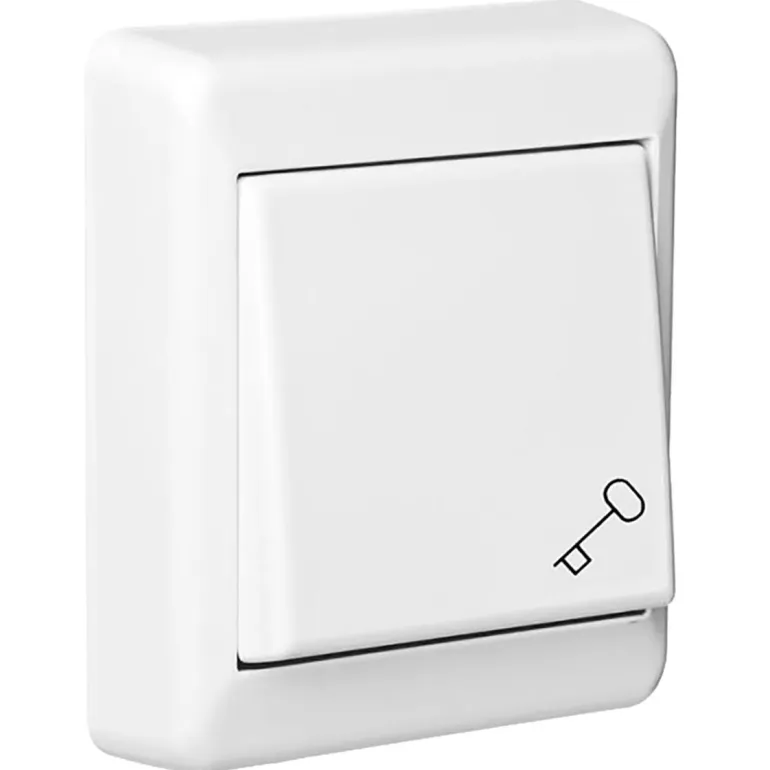 Impulssikytkin oven avaamiseen, joka on varustettu jousipalautteisella painikkeella jossa avainsymboli. Sekä sulkeutuva että avautuva toiminto ja lisäksi mahdollisuus jatkokytkentään toiseen kytkimeen.