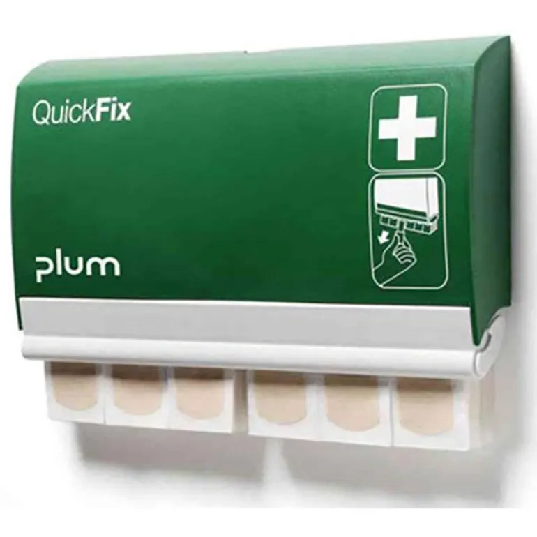 Plum QuickFix Water Resistant on vedenpitävillä laastareilla varustettu laastariannostelija, jossa jokainen laastari on pakattu erikseen. Annostelija on varustettu kahdella laastarin täyttöpakkauksella, joissa kussakin on 45 laastaria.