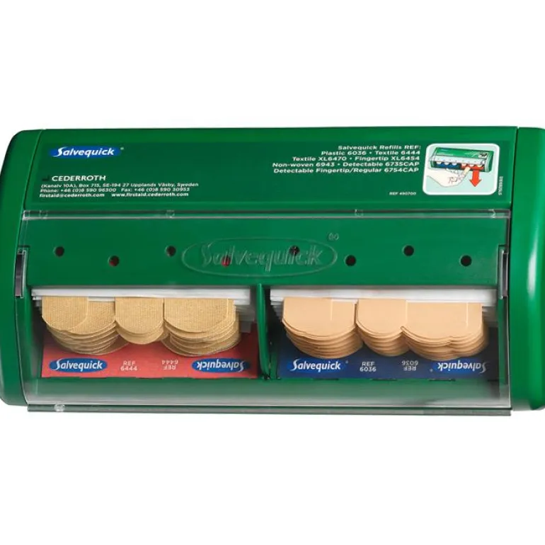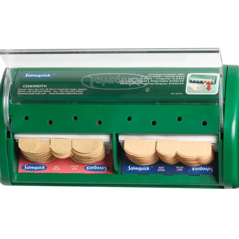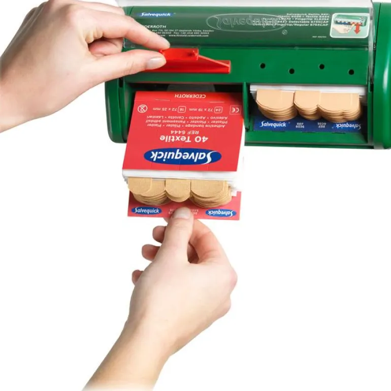 Laastariautomaatti, jonka avulla laastarit vedetään alaspäin. Näin muut laastarit eivät likaannu tai tahriinnu verestä. Laastari on aina paikalla ja käyttövalmiina. Lukitut täyttöaukot ehkäisevät hävikkiä.