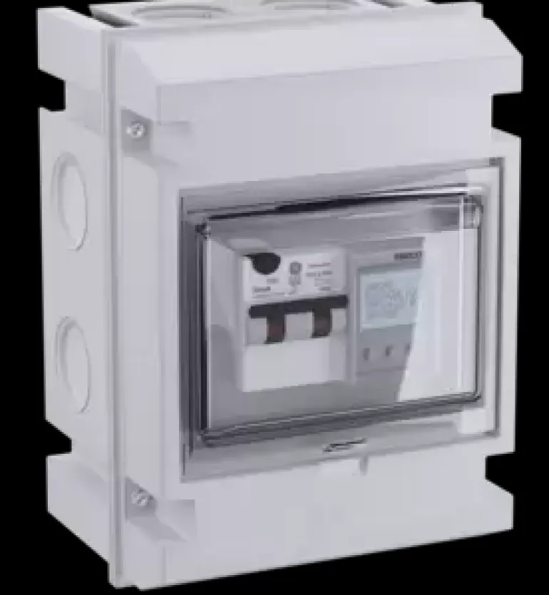 Yksinkertainen ja helppokäyttöinen laitekaappi 1 x 16A pienten laitteiden (alle 5 kW) ohjaukseen. Laitekaapissa on termostaatti, päävirtakytkin, vikavirtasuojakytkin, hälytyskontakti, anturikaapeli ja sulakkeet.