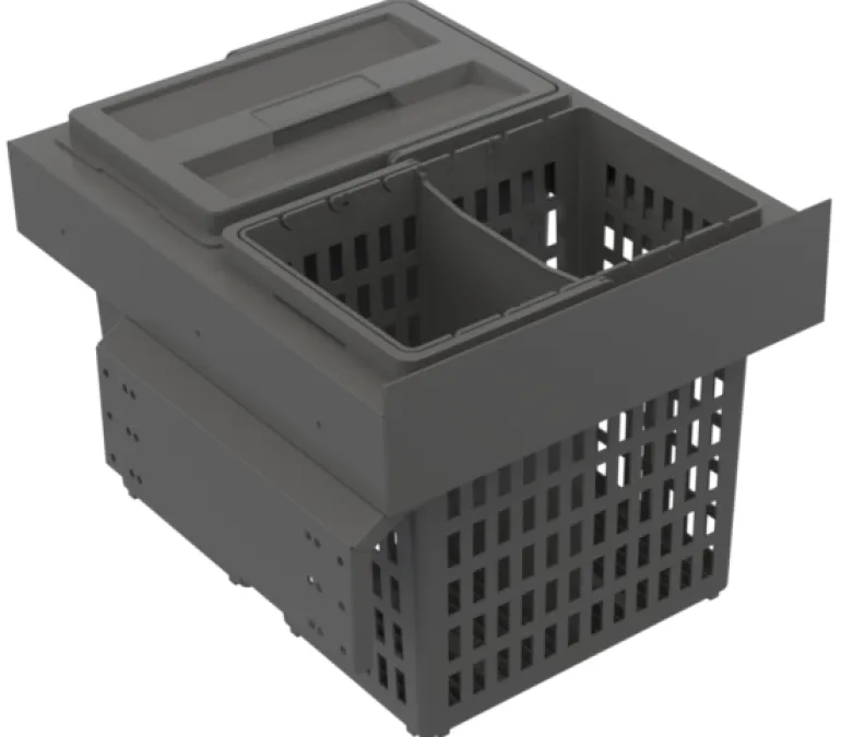 Select Side on suunniteltu saranaoville (sivuripustus), ja se voidaan asentaa sekä vasemmalle että oikealle puolelle. Korkea lajittelukapasiteetti. Tukeva rakenne. Kokonaan ulosvedettävä. Pehmeästi sulkeutuvat – ääntä vaimentavat kiskot. Sis. 1 kannen ja jakajan 13 astialle. Hero-lajitteluastia orgaanisille ruokajätepusseille. Ilmava muotoilu tuulettaa pussia ja minimoi kosteuden ja hajun muodostumisen.
