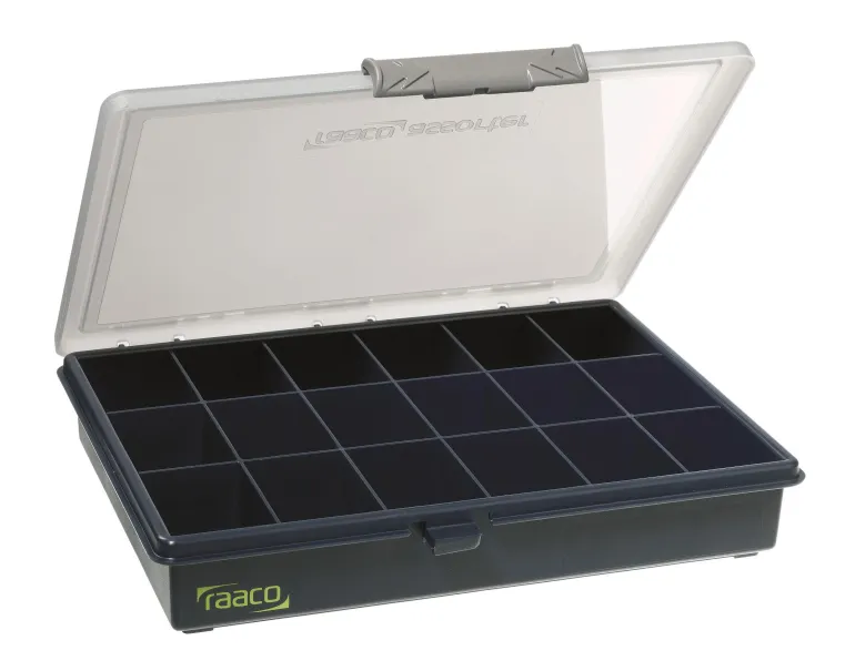 Lajittelulaatikko, jossa on 9 kiinteää lokeroa. Varustettu liukulukolla.