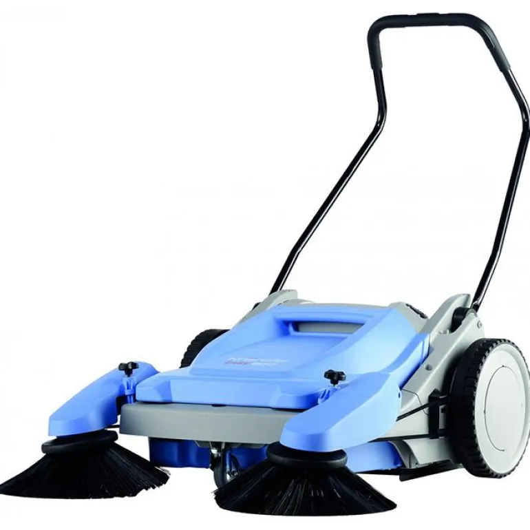 Käsikäyttöisessä lakaisukoneessa on kaksi vastakkain toimivaa lakaisutelaa, 800 mm:n työskentelyleveys ja 30 litran säiliö. Kokoon taitettava kahva takaa helpon säilytyksen.