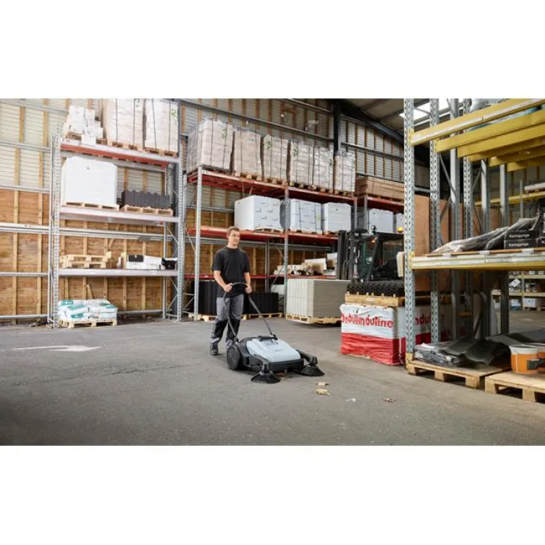 Manuaalinen tehonlähde ja 38 litran roskasäiliö. Lakaisukoneessa on 480 mm:n pääharja, jonka teoreettinen tuottavuus on 1920 m²/h ja käytännön tuottavuus 960 m²/h. Käyttökoneiston ja vetohihnan mekaaninen rakenne on yksinkertainen. Ei moottoria eikä akkuja.