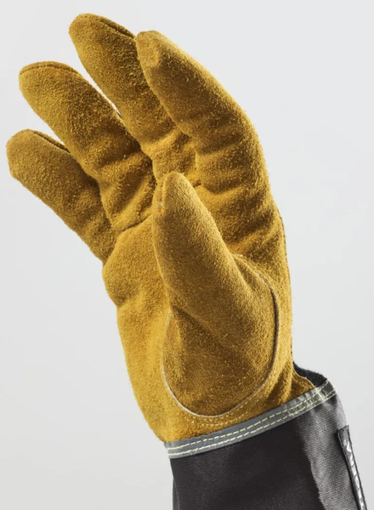 Lämpö- ja viiltosuoja raskaisiin töihin. Kestävä naudan haljasnahka kämmenessä ja hengittävä puuvilla kämmenselässä. KEVLAR®-vuori käsineen sisällä parantaa lämpö- ja viiltosuojaa.