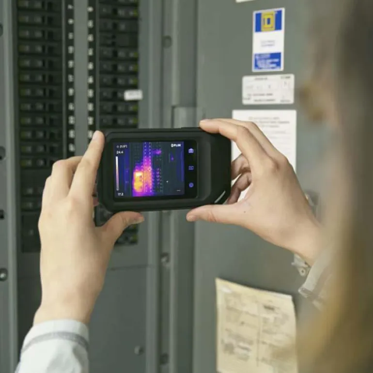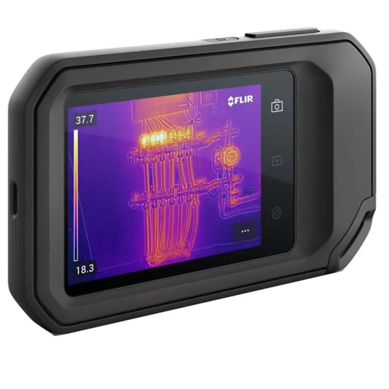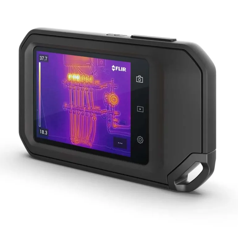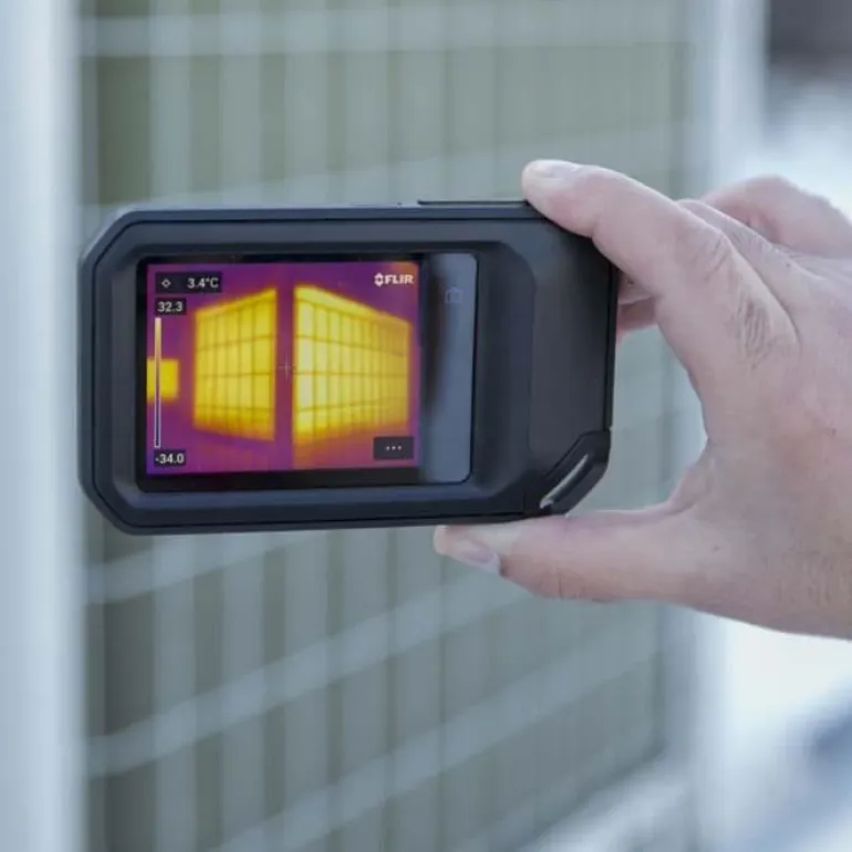 Lämpökamera on suunniteltu kestämään jopa 2 metrin putoamisen, ja IP54-kotelo tarjoaa korkean suojauksen pölyltä ja vedeltä. Kamera on myös varustettu LED-taskulampulla, jonka avulla voit saada paremman kuvan pimeistä ja esteettömistä alueista.