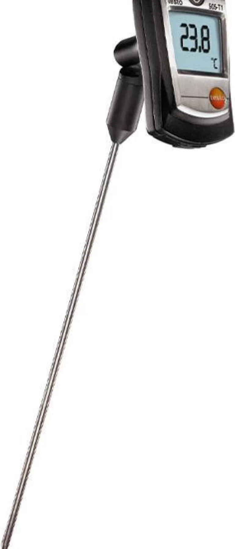 Testo 905-T1 -lämpömittarissa on nopea ja suuri näyttö sekä laaja mittausalue -50…+350 °C, lyhytkestoisesti jopa +500 °C (1–2 minuuttia). Tämän ansiosta 905-T1 on yksi markkinoiden nopeimmista minilämpömittareista. Laite on myös paljon tarkempi kuin useimmat muut saman hintaluokan lämpötilamittarit, erityisesti ylemmällä mittausalueella. Lämpömittarin anturin pituus on 200 mm, ja se sisältää myös ammattilaistason teollisuusanturin (K-tyypin termopari). Mittarissa on kolme AAA-paristoa, joiden käyttöikä on jopa 1 000 tuntia. Sopii käytettäväksi -20…+70 °C:n lämpötiloissa.