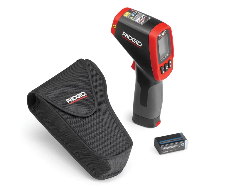 Ridgid IR-200 on kosketukseton infrapunalämpömittari, joka kertoo selkeät, nopeat ja tarkat pintalämpötilatiedot yhdellä napin painalluksella. Paina liipaisinta ja ohjaa erittäin tarkat luokan II lasersäteet mitattavalle pinnalle. Micro IR-200 näyttää lämpötilan välittömästi selkeällä ja helppolukuisella taustavalaistulla LCD-näytöllä. Lukuisten muiden sovellusten lisäksi tämä vankka laite antaa ammattilaisille mahdollisuuden diagnosoida lämmitys- ja ilmanvaihto-ongelmia, suorittaa sähkömoottoreiden ja sähköjärjestelmien ennaltaehkäisevää seurantaa, suorittaa höyryloukkujen vianetsintää ja tarkistaa nopeasti sulakkeet tai katkaisijat ylikuumenemisen varalta – kaikki tämä ilman kosketusta.