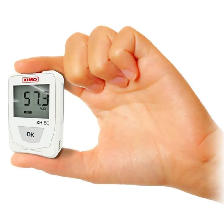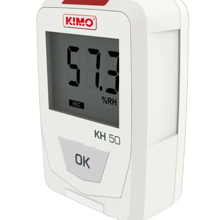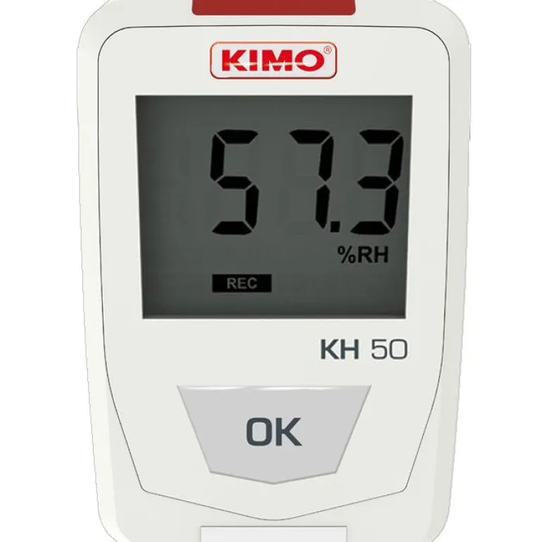 Kimo KH50 on äärimmäisen kompakti lämpötila- ja kosteusloggeri, jossa on sisäinen muisti 16 000 mittausarvolle. Loggeri käynnistyy painiketta painamalla tai ajastimella. Loggerin toiminta-aikaväli on vapaasti säädettävissä 1 min – 24 h. Mittaustiedot on nopea ja helppo siirtää loggerista PC-tietokoneeseen tavallisen Micro-USB-kaapelin avulla.