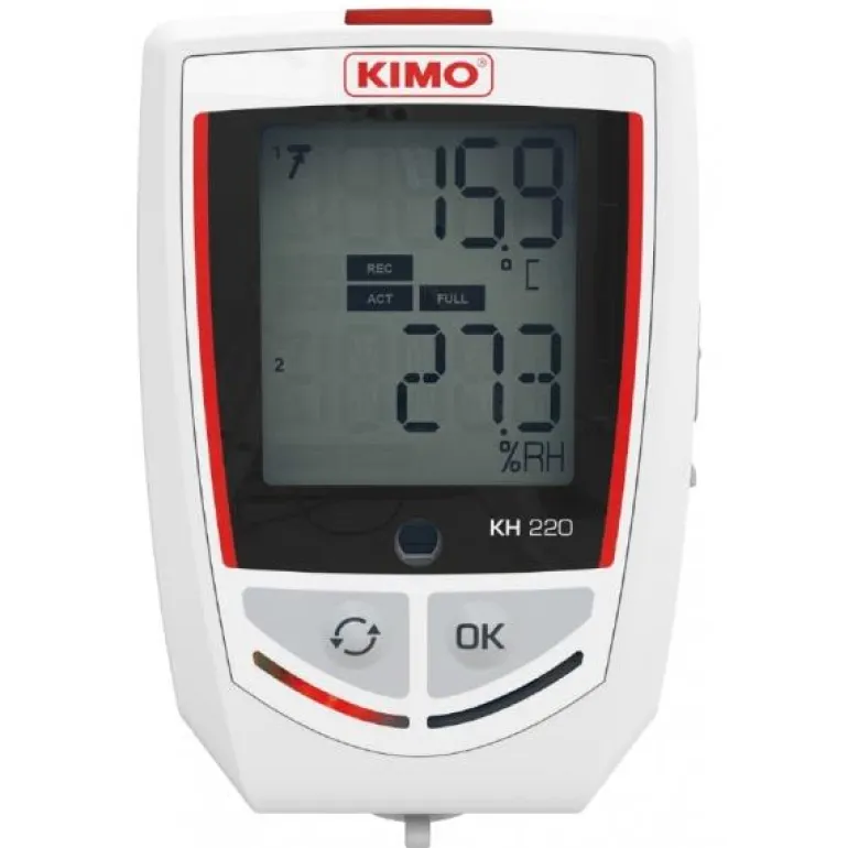 Kimo KH220 on yhdistetty lämpötila- ja kosteusloggeri. Tallennuskapasiteetti 1 000 000 mittauslukemaa. Loggerin toiminta-aikaväli on vapaasti säädettävissä 1 min – 24 h. Mittaustiedot saadaan helposti PDF-tiedostona integroidun ohjelmiston ansiosta.