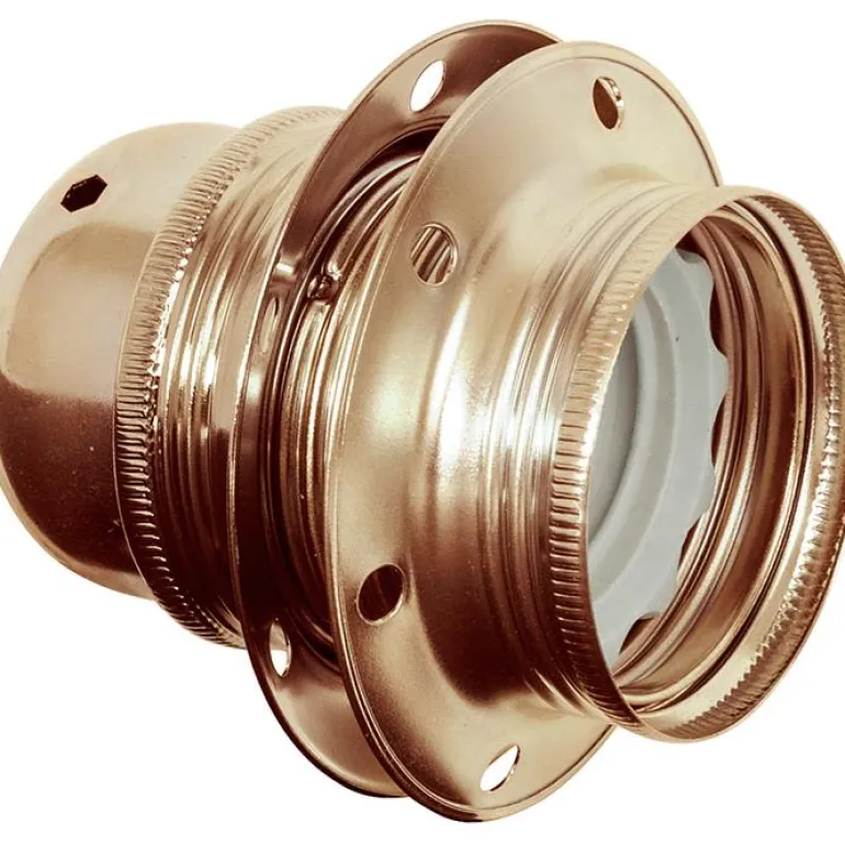 Kierteellinen lampunpidike kahdella varjostinrenkaalla ja eristyssarjalla . Pidike soveltuu esimerkiksi pöytä- ja kattovalaisimille. Maaruuvilla.