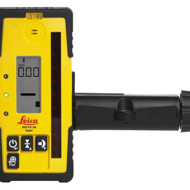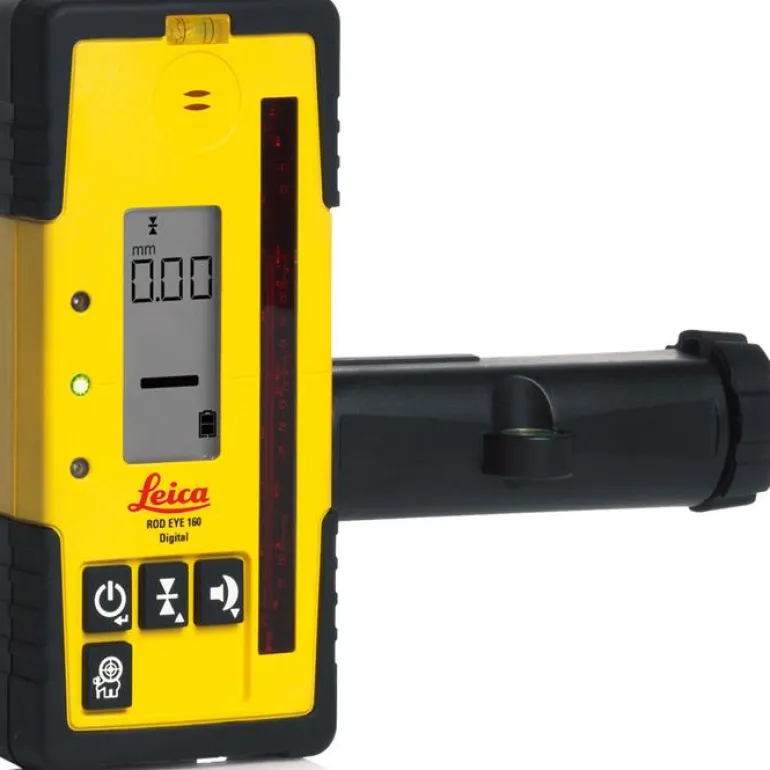 Leica Rod Eye 160 Digital on laservastaanotin, jossa on digitaalinen mittaustuloksen näyttö millimetrin tarkkuudella. Siinä on LCD-näyttö sekä edessä että takana, mikä helpottaa tietojen lukua. Leica Rod Eye 160 Digital näyttää poikkeaman millimetreinä suoraan näytöllä.