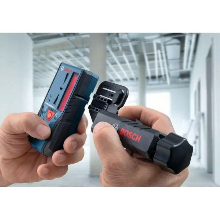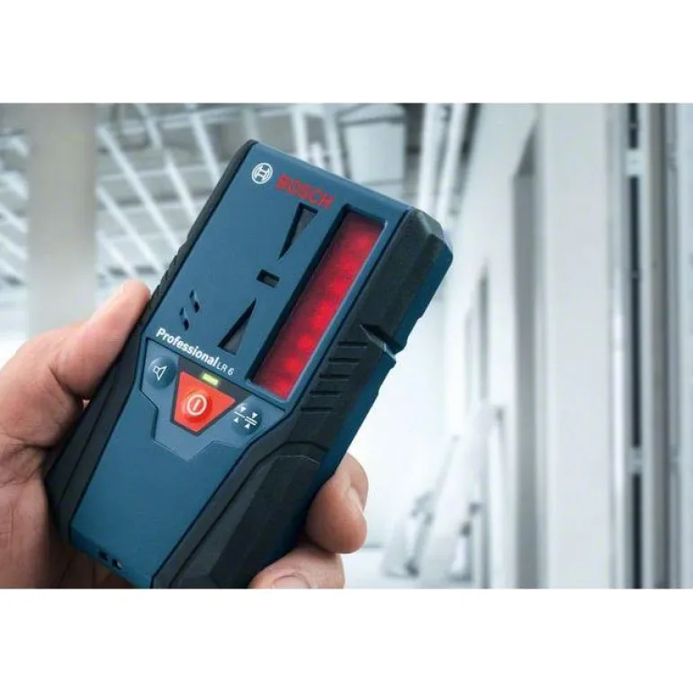 Bosch LR 6 on kätevä laservastaanotin jopa 50 metrin kantamalla Lasersäteen tason voi kohdistaa optisesti ja akustisesti erilaisissa valaistusolosuhteissa.