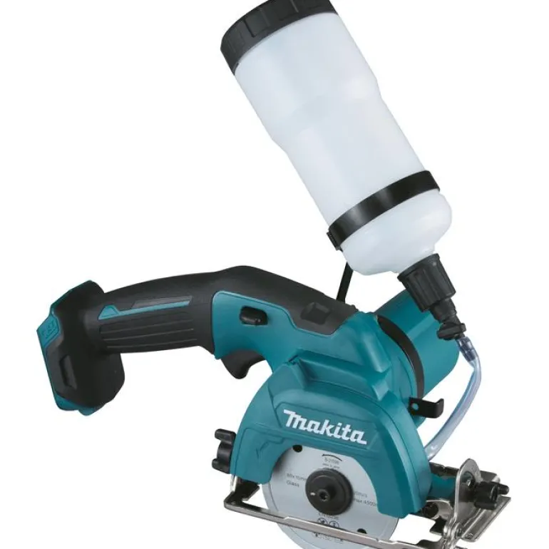Makita CC301 on 12 V:n lasi- ja laattaleikkuri, kallistuskulma 45°. Leikkurissa on jäähdytysveden säiliö.