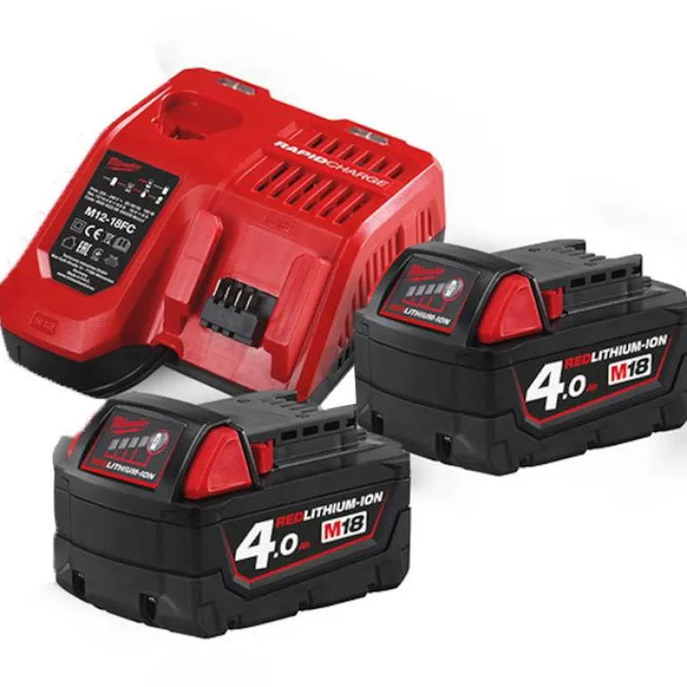 Milwaukee M18 NRG-402 on latauspaketti, joka sisältää 2 kpl M18 B4 4 Ah akkua ja M12-18 FC laturin. Mukana tulevalla laturilla akun latausaika on 45 minuuttia.