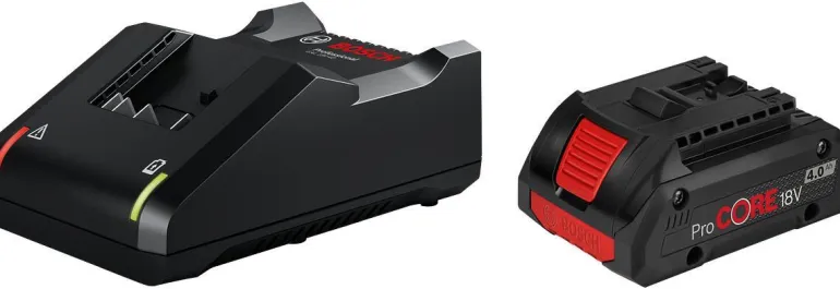 18V:n latauspaketti, jossa yksi ProCoRE-akku ja pikalaturi.