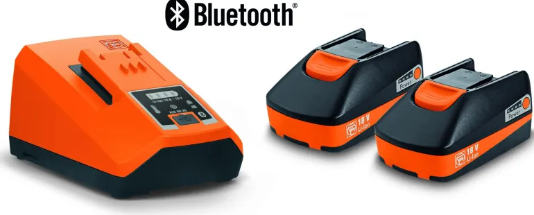 Kaksi litiumioniakkua ja pikalaturi ALG 80 BC. Bluetooth®-yhteys mobiililaitteeseen yhdistämistä ja my.