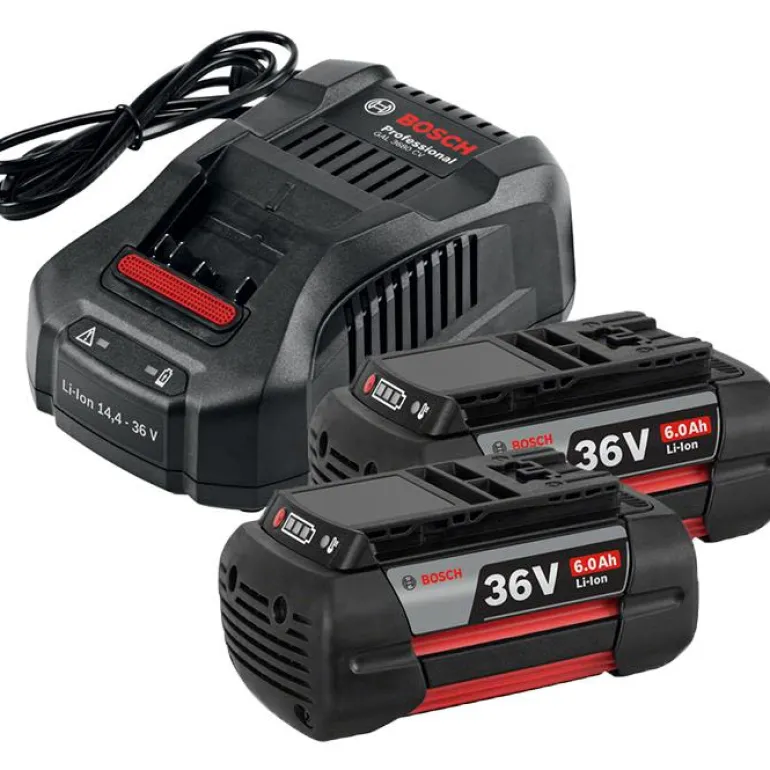 Paketti sisältää Bosch GAL 3680 CV -latauslaitteen sekä kaksi 36V XL 6 Ah:n akkua.