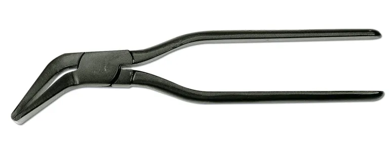 Suoristinpihti, jossa taivutetut leuat 45° ja yksinkertainen nivel. Mustien pihtien pituus on 280 mm.