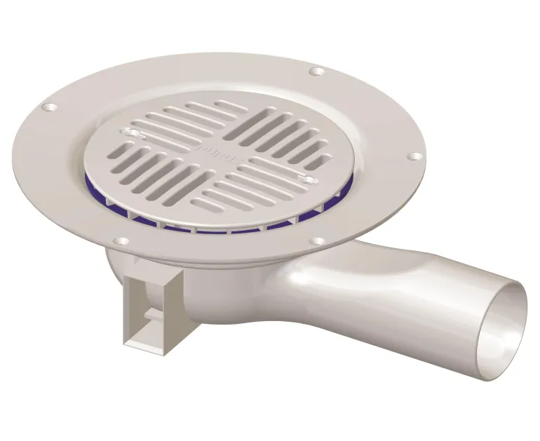 Lattiakaivo, jonka ritilän halkaisija on 130 mm ja jossa on vaakasuuntainen ulostulo. Kaivon rakennekorkeus on erityisen matala ja putken ulkohalkaisija 50 mm.