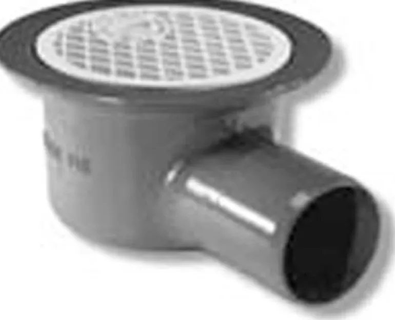 Lattiakaivo, mitat 75 x 150 mm, poistoaukko pohjassa. Valmistettu valuraudasta ja muovista.