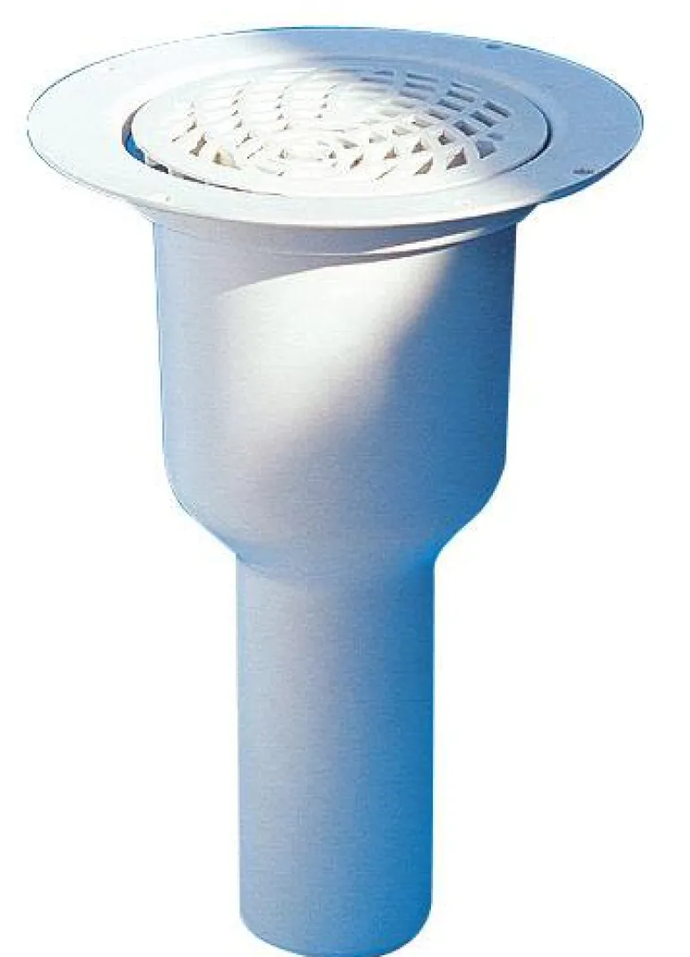 Lattiakaivo ja siivilä, kiinnitysrengas ja suojakansi. Ritilän halkaisija 150 mm ja poistoaukko pohjassa. Valmistettu valkoisesta PP-muovista.