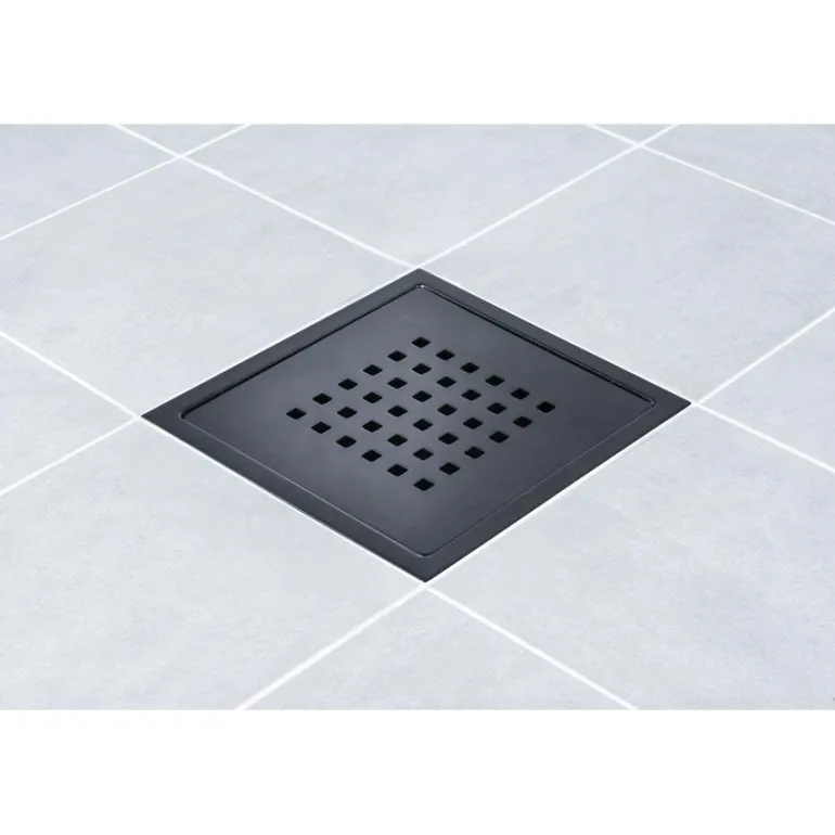 TEBO Details Stockholm Lux Black on 200×200 mm lattiakaivosiivilä, joka on valmistettu mattajauhelakatusta mustasta ruostumattomasta teräksestä, tyyppi AISI 430. Ei haponkestävä.