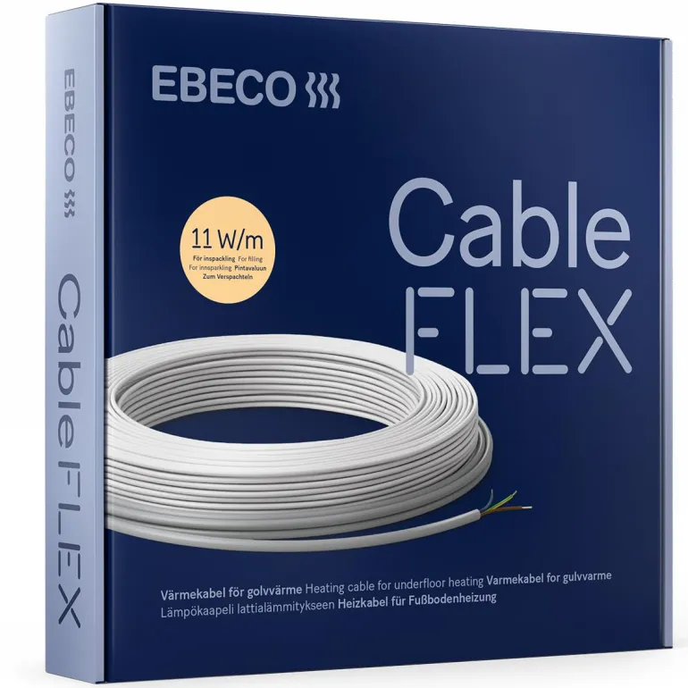 Ebeco Cableflex on resistiivinen 2-johtiminen, suojattu 540 W -lattialämmityskaapeli, joka voidaan asentaa yleisimmin käytettyjen lattiamateriaalien, kuten laatta- ja luonnonkivilattioiden, puu- ja laminaattilattian sekä muovimaton alle (sisään tasoitukseen). Pituus 49 m ja halkaisija 4 mm. Ohut kaapelirakenne, joka pitää rakennekorkeuden matalana. Voidaan asentaa yhdessä Cable Board-eristyslevyn kanssa, jolloin energiankulutus pienenee jopa 35 %. Sama Cableflex -kaapeli, joka sisältyy Ebecon suosittuihin Cable Kit -lattialämmityssarjoihin.