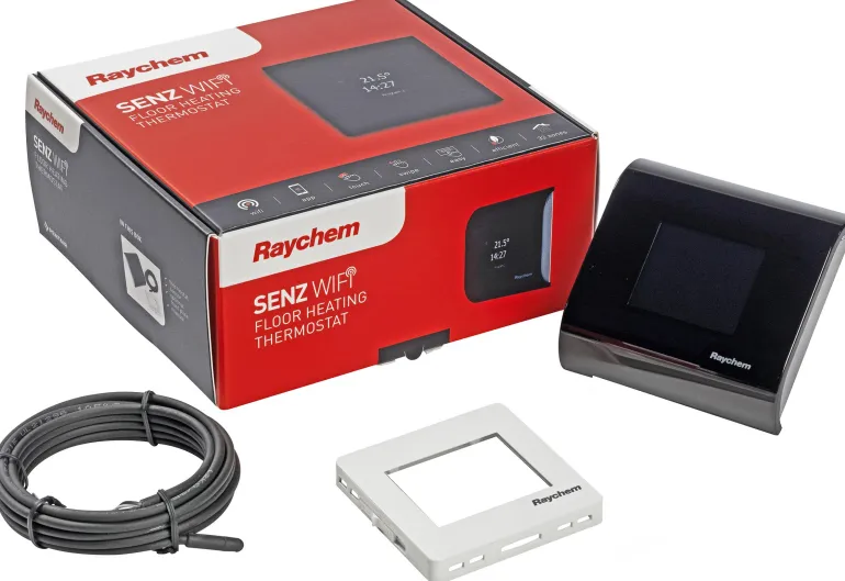 Raychem R-SENZ-WIFI on ohjelmoitava WiFi-lattialämmitystermostaatti, jossa on kosketusnäyttö, helppo kosketus- ja pyyhkäisynavigointi sekä älykkäitä energiansäästösovelluksia. Termostaattia voidaan ohjata älypuhelimella SENZ WIFI -sovelluksella, joka on ladattavissa ilmaiseksi App Storesta tai Google Playsta. R-SENZ-WIFI:ssä on useita käyttötiloja: 3 viikko-ohjelmaa, vakiotila, tehostustila, lomatila ja pois päältä -tila. Eri ohjaustilat ovat lattia-anturi, huoneanturi tai molempien yhdistelmä, jolloin lattia-anturi toimii rajoittimena tai säätimenä. Yhteensopiva 2, 10, 12, 15, 33 ja 100 kΩ:n antureiden kanssa. Sisältää lattia-anturin 3 metrin kaapelilla. Toimitus sisältää kaksi etulevyä: Raychem musta ja valkoinen (RAL9003) keskiölevy kytkimelle.