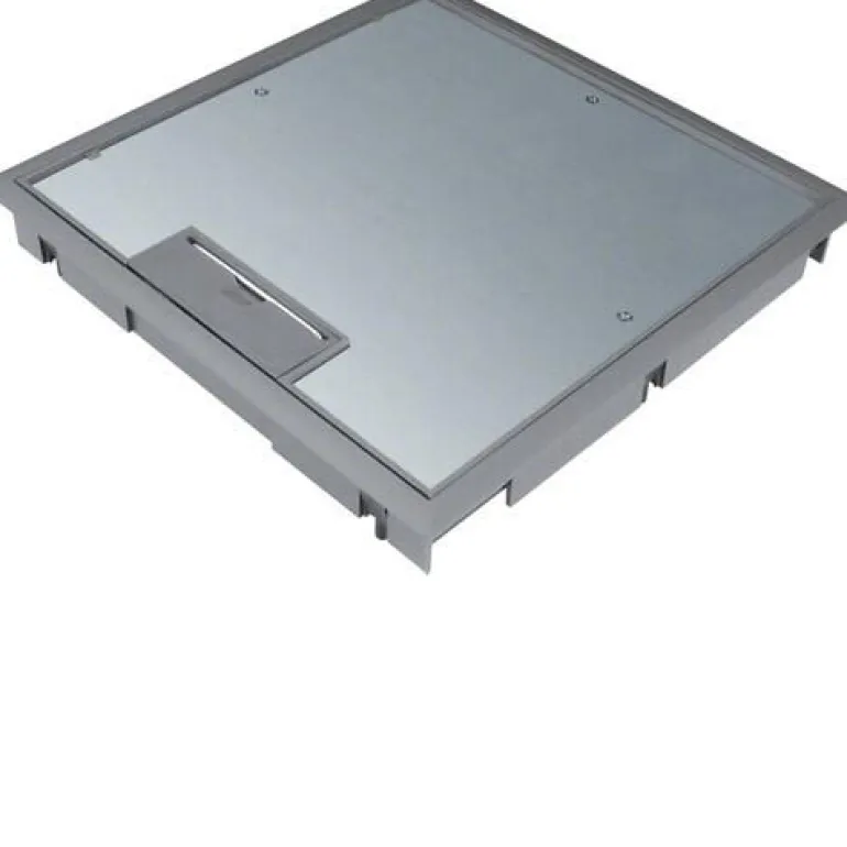 Lattiarasiakansi Q08 294×294 mm 12 mm lattiapinnoitteelle polyamidi-muovista, raudanharmaa. Läpivientien lukumäärä 1 ja suojamaadoitettujen pistorasioiden määrä (CEE 7/3, tyyppi F) 8.