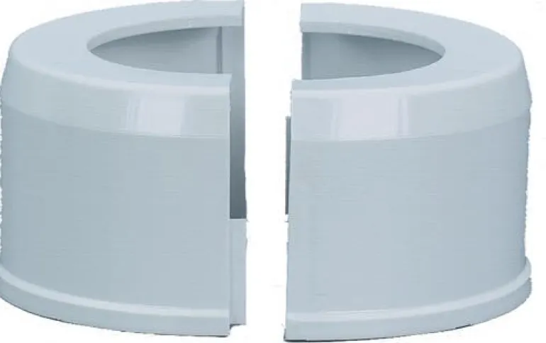 Lattiasuojus, mitat 180 x 108 mm, soveltuu asennettavaksi WC-tiloihin. Malli on jaettava ja valmistettu valkoisesta PP-muovista.