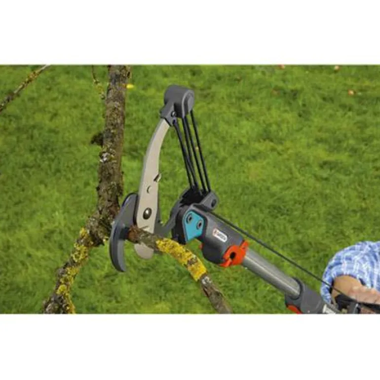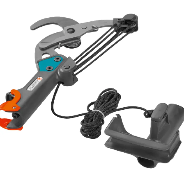 Erittäin kätevä: latvussakset voidaan ripustaa oksaan käytön helpottamiseksi. Säädettävän D-kahvan ansiosta käsittely on tehokasta, miellyttävää ja ergonomista. D-kahvassa on narun säilytystila (naru ei sotkeudu käsittelyn/varastoinnin aikana). Molemmilla puolilla narun pään kiinnityspaikka. 4,7 m pitkä vetonaru on repäisyluja, ja sitä on helppo käsitellä.
