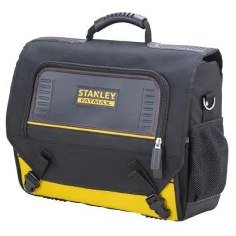 Laukku kannettavalle tietokoneelle ja työkaluille. Voidaan kiinnittää pyörälliseen FATMAX-työkalululaukkuun (FMST1-80148). Sopii enintään 15,6″ tietokoneelle. Nopeasti suljettava ”quick release” -solki. Ergonominen kantokahva. Kestävä 600 denierin kangas. Paljon taskuja ja työkalulenkkejä. Pehmustettu lokero tietokoneelle tai A4-asiakirjoille. Irrotettava pehmustettu olkahihna. Avataan edestä, joten sisältö on helposti saatavilla.
