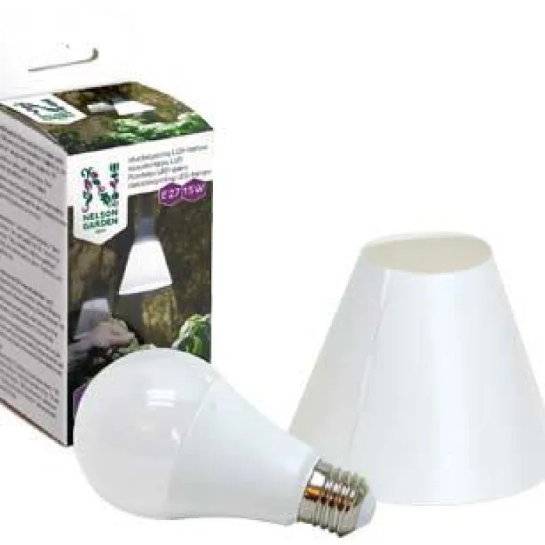 Energiatehokas LED-lamppu ja helposti asennettava, erityisesti LED-lampulle tarkoitettu varjostin, joka suuntaa valon alaspäin. Esikasvatukseen, talvehtimiseen ja yleisvaloksi. Varjostin polypropeenia (PP).