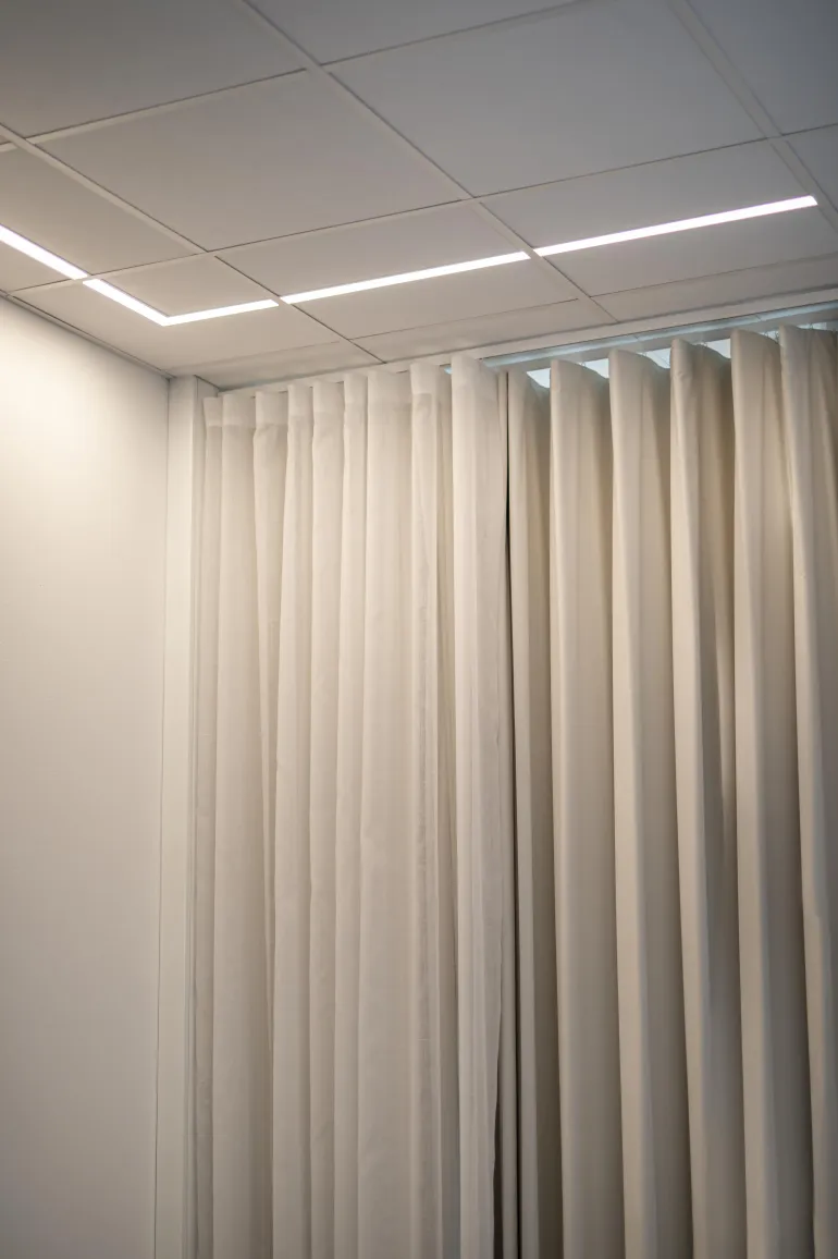 Hide-a-lite Ray on himmennettävä 230 V-valaisin huurretulla kuvulla. Tasainen valo julkisiin tiloihin, joiden kattoon halutaan luoda tehokkaita valolinjoja.