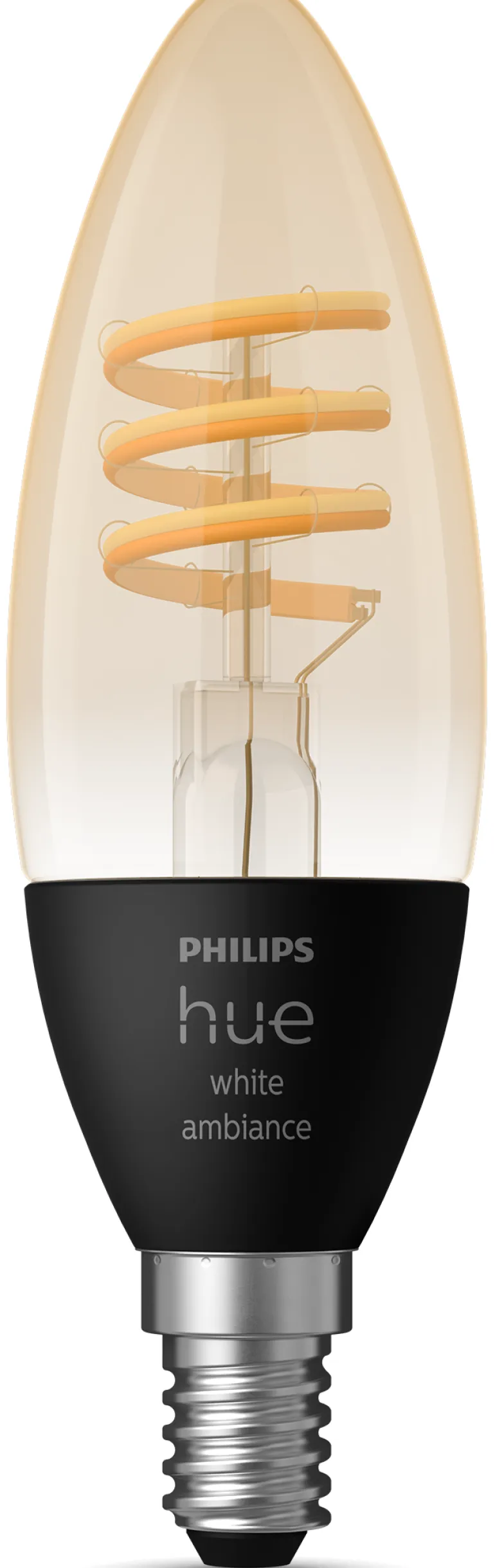 Philips Hue White Ambiance Filament -lamppu mahdollistaa valkoisen valon himmentämisen halutulle tasolle ja tarjoaa laajan valikoiman valkoisen sävyjä lämpimän valkoisesta kylmän valkoiseen, yli 50 000 sävyä. Voit ryhmitellä useita filamenttilamppuja ja säätää jokaista lamppua erikseen, jotta saat oikean tunnelman eri toimintoihin ja tilanteisiin. Käytä esimerkiksi kirkasta valkoista valoa aamulla energiatason nostamiseen ja vireyden parantamiseen päivän alkuun tai valitse illalla pehmeä, kultainen, lämmin hehku rauhoittumista ja rentoutumista varten.